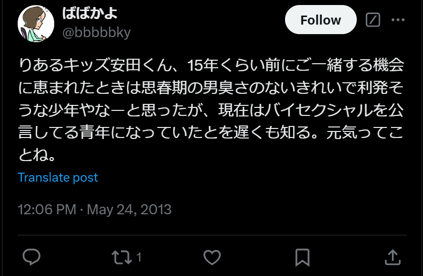 お笑いタレントで元「りあるキッズ」の1人である安田善紀さんは、自らがバイセクシャルであるとカミングアウトしています。本人曰く、8:2の割合で男性が好きなのだそう。